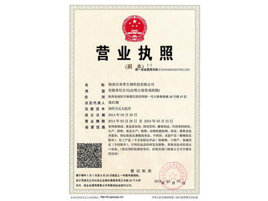 陜西百草萃生物科技有限公司,位于陜西省咸陽市秦都區(qū)濱河西路1號(hào)大秦御港城,公司成立于1996年,主要從事天然植物種植、研發(fā)、生產(chǎn)、加工、銷售為一體的高科技企業(yè)。主營醫(yī)藥原料、保健品原料、化妝品原料,精細(xì)化工原料。公司致力于人類健康保護(hù)事業(yè)“ 以科技為動(dòng)力,以質(zhì)量求生存” 的本質(zhì),依托陜西高新科技技術(shù)人才和科研優(yōu)勢(shì),已形成多學(xué)科、全方位、高層次的技術(shù)管理精英團(tuán)隊(duì)。充分利用秦巴山區(qū)的天然藥物資源,歷經(jīng)多年發(fā)展為打造百草萃生物品牌奠定了基礎(chǔ)。